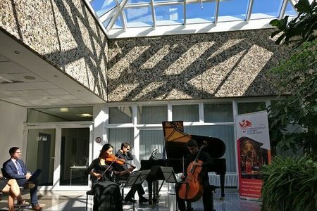 Das traditionelle Mittagskonzert des Musikfestes wird von Studierenden der Meisterkurse von Prof. Elisabeth Kufferath (Violine), Prof. Arie Vardi (Klavier) und Prof. Oliver Wille (Ensembles) gestaltet.